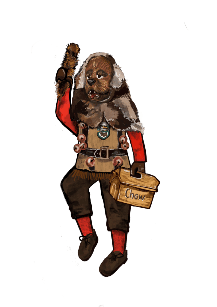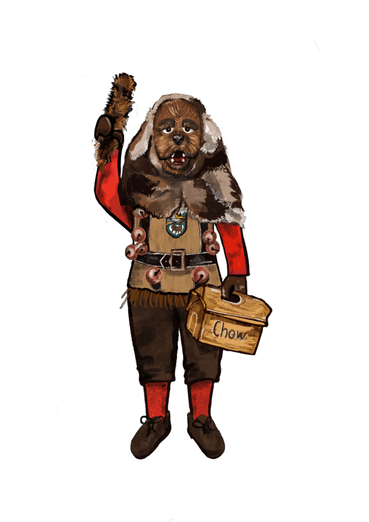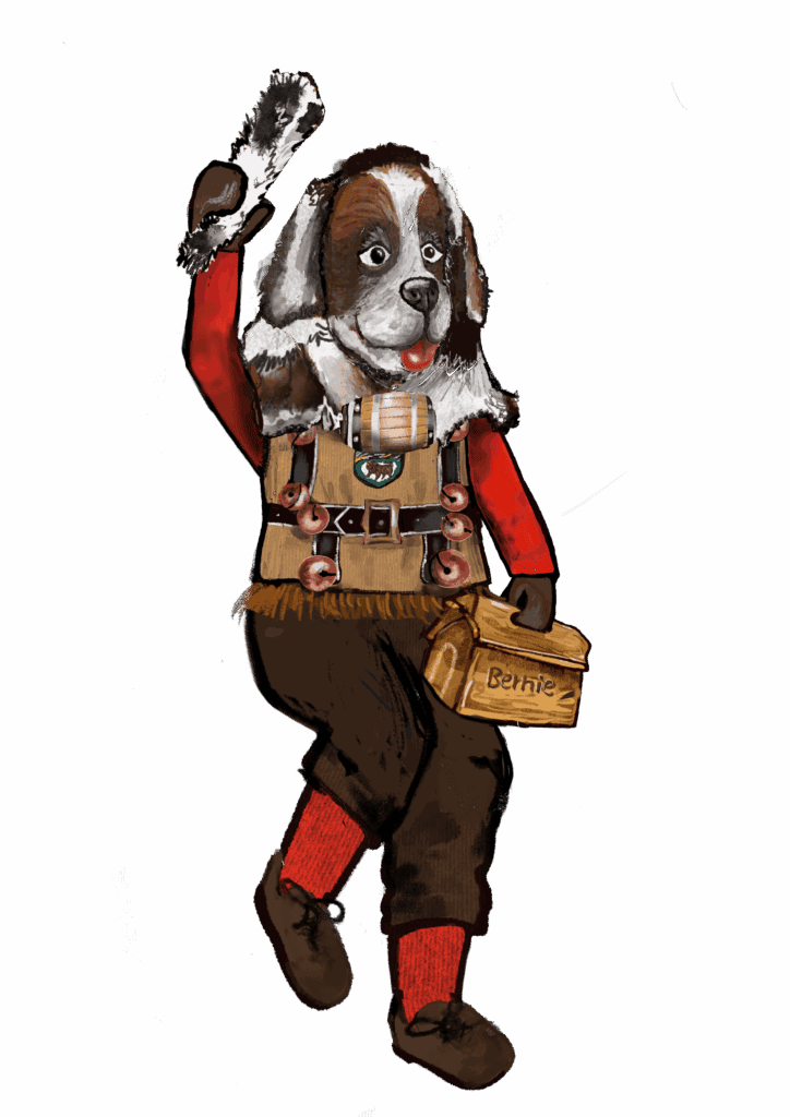 Mit seiner großen Maske, dem treuen Blick und dem Schnapsfass um den Hals ist er nicht zu übersehen. Das Fass ist dabei längst mehr als nur ein Accessoire – es ist sein Markenzeichen. Ob es nun für den schnellen Durst gedacht ist, oder einfach als Symbol für Geselligkeit: ohne Fass wäre der Bernhardiner nicht der Bernhardiner. Ob beim Umzug, oder im Zelt – er marschiert stolz mit den anderen 4 Rassen.