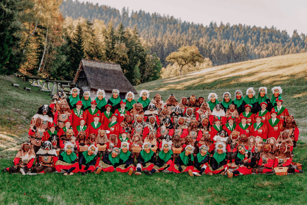 Mit seiner markanten Maske und dem Fellkragen macht er sofort klar: hier kommt Tradition auf vier Pfoten.